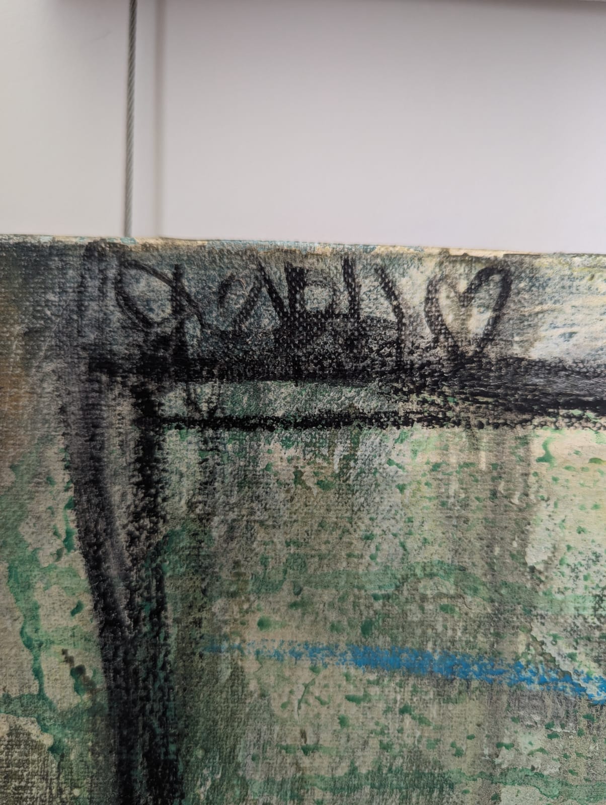 A striking contemporary work titled 'Abstracted Inverted Face' by Australian artist Davida Allen (b. 1949), demonstrating her bold approach to figurative abstraction and psychological portraiture. This compelling piece challenges conventional representation through its inverted orientation and abstracted treatment, creating a work that is both visually arresting and conceptually engaging. β¨